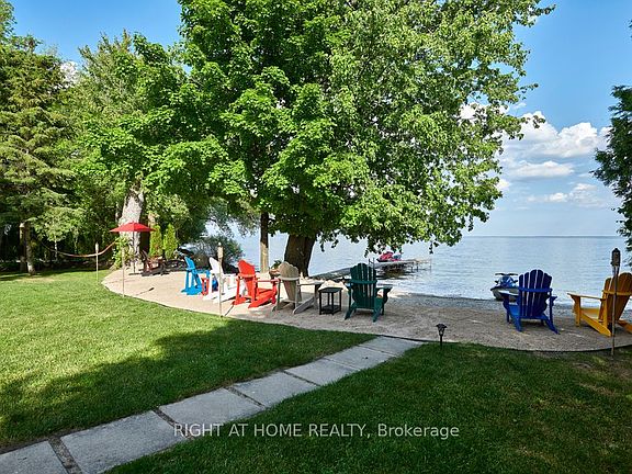 Beautiful Waterfront Property in Big Bay Point! Over 1/2 acre with unobstructed views of Lake Simcoe from almost every angle of the property. Owner will sell as a Turn Key Property so just pack of the Car and Enjoy the Water or rent it out and make $$. Pie shaped Lot will allow for a much Larger Home, or enjoy the existing 4 season residence. 85 feet of Sandy Beach Area. Walk directly into the Lake enjoy the large Dock with a T-head Seating Area for entertaining. This property has a lot to offer including the 4 season Home with Great Room and a cozy fireplace, Large Deck for entertaining. Bbq with Gas Hook up. Double Car Detached Garage and a shed to store the water Toys. Very few properties in Big Bay Point that have lots like this. Book a private showing today! Come see the potential this property has to offer! This Property and Lot size must been seen to be appreciate. Walk or Drive to Friday Harbour to enjoy their fine Restaurants and shopping also located just outside the Water entrance of Friday Harbour if you want to Boat in. 15 mins to Barrie or Alcona Beach for Shopping approx 20 Mins to Barrie Go station.