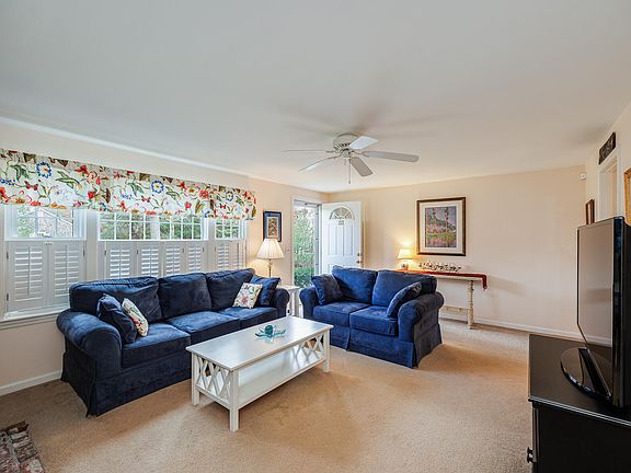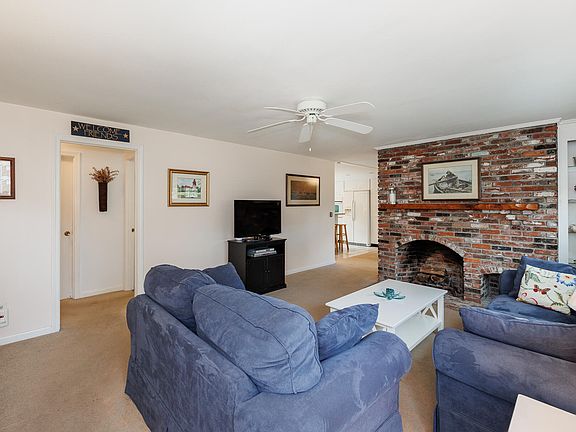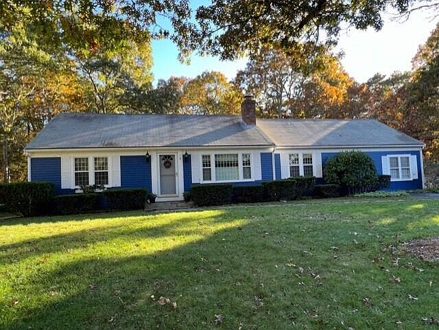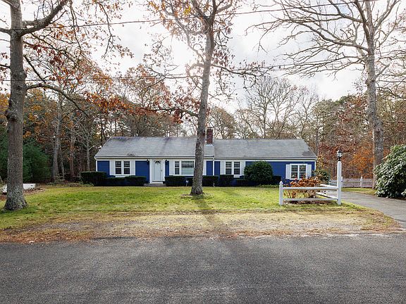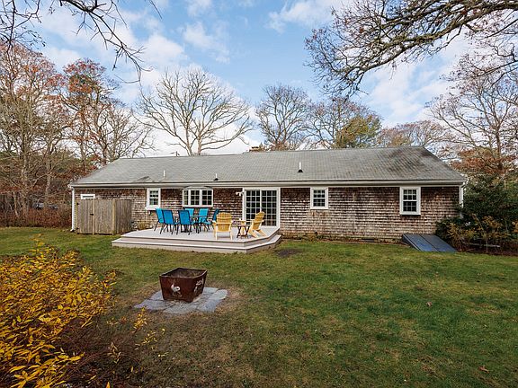 Beautiful Ranch Style Home!Are you looking for one floor living with spacious rooms and private backyard? Then you won't want to miss this one! This home has great curb appeal and is one of the larger lots in the desirable Captain's Village neighborhood. It is perfect for entertaining with the ultimate indoor/outdoor floor plan. The backyard is a peaceful oasis due to the 40 acres of abutting town-owned wooded land with walking trails, multiple gardens featuring front and backyard hydrangea plants, a man-made water garden and an outdoor shower. Upon entering from the front walkway, you will immediately be impressed by the well-appointed living room featuring a fireplace with brick beehive and built-in shelving. The living room flows into the dining room which features exposed brick. An open floor plan that also offers privacy for families and guests, including hardwood floors, good sized closets, and ceiling fans. The kitchen includes an island with gas stove top, electric wall oven, generous cabinet space, and a south-facing bay window- a perfect spot for all your indoor herbs and plants. The kitchen is open to the dining room and separate sitting room, with a slider to the 20x14 Trex deck, and level private backyard. There are two spacious bedrooms on one end of the house with a full bathroom, and another large bedroom on the opposite end of the house that can sleep four. There is also a half bath with first floor laundry. The rear of the house and yard face south and provide the common rooms with lots of sunlight. There are three large raised bed vegetable gardens, and off street parking for four cars. This has been a lightly used second home. Set on a beautifully landscaped lot, minutes to the south facing beaches and close to everything including bike trail (accessible at end of street) that leads directly to bike trail bridge over Station Avenue to Cape Cod Rail Trail, where you can explore this 27.6 mile trail, which also ideal for walking, running. This is a must see!!
