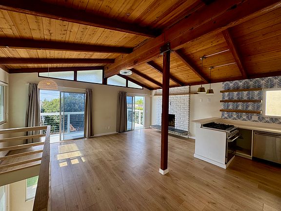 Inside, the home features stunning wood-beam ceilings, two inviting fireplaces, and generous deck space, creating a warm, airy, and welcoming atmosphere. This is the rear unit with its own separate entrance, offering exceptional quiet, comfort, and privacy.
