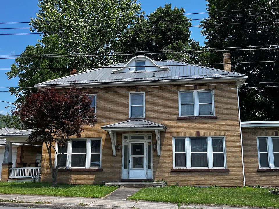 Brick two-story home in center of Yeagertown, 3BR 1.5BA, 1824 sq. ft., wood trim throughout, newer metal roof on house and garage, replacement windows, French doors, natural gas heat, hot water furnace, electric water heater, 200 amp service plus additional panels, two-car garage with electric, covered porches at side and rear, cash or conventional financing only due to peeling paint. Priced to sell . Household furnishings/items to be sold at auction on September 2.