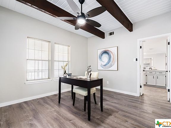 - Beamed Ceilings, Bookcases, Built-in Features, Ceiling Fan(s), Double Vanity, High Ceilings, Home Office, Pull Down Attic Stairs, Recessed Lighting, Walk-In Closet(s), Breakfast Bar, Eat-in Kitchen, Kitchen/Dining Combo