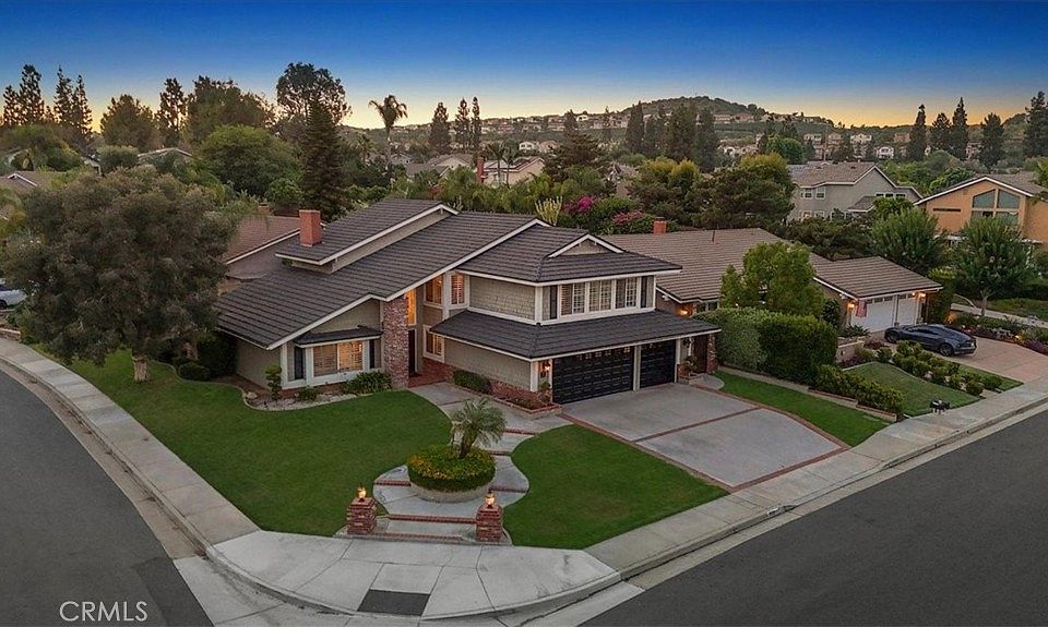 Welcome to this beautifully remodeled 5 bedroom, 3 bathroom home in the coveted neighborhood of Eagle Hills with an amazing floor plan! The first floor has an updated kitchen with chef grade appliances and coffee bar that opens to the family room. It also features a large formal living room with an impressive fireplace and vaulted ceilings, a guest bedroom/office, full bath, and separate laundry room. Upstairs, the expansive primary suite boasts vaulted ceilings and includes a cozy fireplace, an updated large primary bath with a soaking tub, walk in shower and lots of closet space. A huge bonus loft on the second level provides additional living space and can also be used as a bedroom. The backyard is a private oasis with new hardscape and a recently remodeled, pebble pool and spa! Enjoy the charm of a community known for its famous Brea Christmas Lights, making this home ideal for festive gatherings and year-round enjoyment!