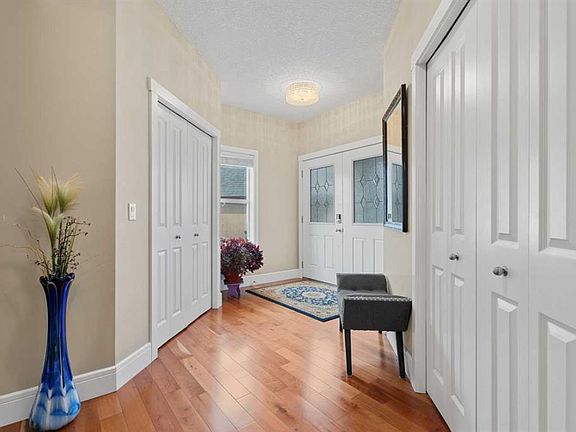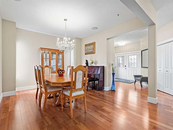 Welcome home to Aspen Woods in your new 5-bedroom + office house with over 2700 sq ft of above-grade space plus a finished basement. This executive air-conditioned home is on a large pie-shaped lot with no neighbours behind and on a quiet cul-de-sac on a no-through road with a playground around the corner. The main floor of the home has an inviting foyer with freshly painted double doors (this makes moving large items a breeze) and two closets, including a rare walk-in closet at the entry. Notably, this home is entirely carpet-free: cherry hardwood on the main floor, oak hardwood upstairs, and durable vinyl plank in the basement. There is a formal dining room and a private office on the main floor plus a spacious kitchen/dining/living room. The oversized garage has tall ceilings and could fit a small lift. The laundry is located off the entry to the garage with more closet space. The chef’s kitchen has an enormous island with a matching kitchen table that can be used as an extension of the island. There is a gas range, multiple pantries, a trash compactor, a wine fridge, display areas, and more! You can also catch glimpses of the mountains while sitting at the kitchen table. The living room has built-in wall shelves, a gas fireplace, and big windows to the east. The backyard is designed for both relaxation and play, with a two-tier deck, large shed, play structure, mature landscaping, and two productive apple trees—all on a nearly 7,000 sq. ft. lot. Upstairs is extremely spacious with a large bonus room with vaulted ceilings and built-in shelving, a grand primary bedroom, and three secondary bedrooms. The primary bedroom gets warm morning light and has a 5-piece ensuite and a walk-in closet with custom organizers. The remaining 3 bedrooms upstairs share a bathroom with dual sinks and a separate area for the bathtub & toilet. The westerly bedrooms have great views of the Rockies and Foothills to wake up to. The upper two floors also have built-in ceiling speakers. The fully finished basement includes a fifth bedroom with a built-in sink (ideal for a home-based business requiring a sink), a spa-inspired bathroom with multi-head shower, a wet bar, large bright windows, and ample storage, including a finished space under the stairs. Aspen Woods is a premier neighbourhood of Calgary with lots of local shops, quick access to the mountains, and a choice selection of schools, including Webber Academy, Rundle College, Guardian Angel Catholic, and Dr. Roberta Bondar Elementary. This stately Aspen Woods property blends elegance, functionality, and family-friendly features—ready to welcome you home.