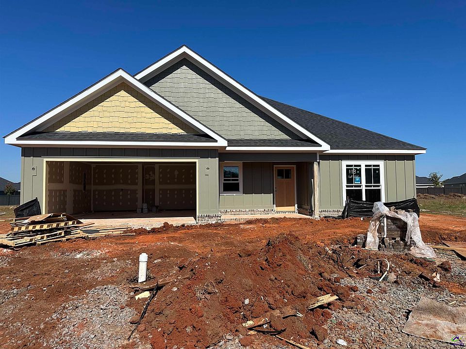 Brick skirtCustom wood cabinetsGranite countertopsTile in the bathroomsTiled kitchen backsplashPre-wired for ev chargingCarpeted bedrooms