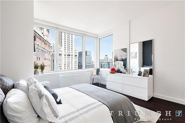 Beautiful 2 bedroom, 2 bath apartment in Financial District's premier boutique luxury building - The Lara. This apartment faces East with great views. Lots of light, great storage space, and high-end finishes throughout. Top of the line kitchen with garbage disposal. *Net effective rent listed. One month free on a 13 month lease. *Photos are of a model unit. The apartment will be delivered unfurnished with walls painted white. Kitchens are German manufactured with soft-close cabinetry and built-in organizer trays, Liebherr refrigerators, Professional-style Bertazzoni oven ranges with Bertazzoni microwaves, White Nano glass countertops and backsplashes, Blomberg dishwashers and garbage disposals. Bathrooms feature Duravit basin and lavatory, Kohler tubs, Porcelain tile flooring and walls and Grohe faucets. All units feature, hardwood strip flooring with walnut finish, Solid core doors, Valli & Valli door hardware, Central A/C and heat, solar shades, custom built out closets with multiple hanging bars and shelving. Residents can join the Nassau Club featuring 10,000 square feet of indoor and outdoor amenities over two floors with two terraces. Indoor amenities include: Fitness center outfitted with state-of-the-art Cybex cardio equipment with embedded televisions and Hoist strength training equipment. Connected to the fitness center, a boxing studio with an interactive Nexersys training machine, boxing equipment as well as a terrace with all-weather ping-pong tables. Lounge with library, televisions, Gourmet custom kitchen with Miele appliances, perfect for entertaining or catering private events and cooking demonstrations, coffee and soda bar. Multi-screened gaming/media room with smart, 3-D televisions equipped with the latest gaming consoles. Outdoor amenities include: Landscaped roof deck with lounge area with covered wet-bar, grills and communal and intimate seating areas, screening area with all-weather flat-screen television and retro-style observation binoculars.