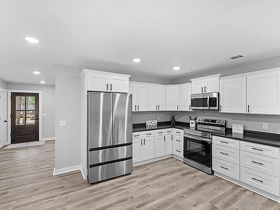 Inside, every detail has been upgraded: new plumbing and electrical throughout, brand new HVAC system with insulation, energy-efficient windows, new water heater, and all-new lighting, fixtures, vanities, and tub/showers. The home also includes new LVP flooring, fresh drywall with custom shelving, upgraded interior and exterior doors, and detailed trim work.