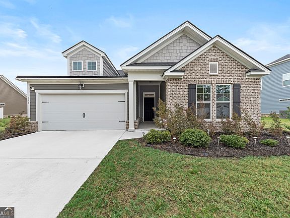 Immaculately maintained one-level 3-bedroom, 2-bath home. Beautiful brick facade, hardy wood planking, huge level, fenced yard. Step inside and be greeted by a bright, airy great room with cathedral ceilings and an open design that's perfect for entertaining. You will love the easy flow from the living area to the covered patio, creating the ideal indoor-outdoor lifestyle. Upgrades include backyard fencing, a screened patio, a Ring doorbell, and a camera. Great for pets and parties. The smartly designed kitchen connects to a spacious dining area and also features granite countertops, 42-inch cabinets, stainless steel appliances, and ample prep space. Everything a home chef needs. Enjoy the beauty of modern wood-look vinyl plank flooring in the common areas, with cozy carpet in the bedrooms. This thoughtful split floor plan ensures privacy for the primary suite, which includes a luxurious bath with double vanities. The Master Bedroom also has access to the enclosed patio. Finished 2-car garage. Fully sodded yard with irrigation. This home truly has it all: style, comfort, and convenience. It's a must-see for your dream home shortlist! Low HOA fees include lawn care and lawn treatments.