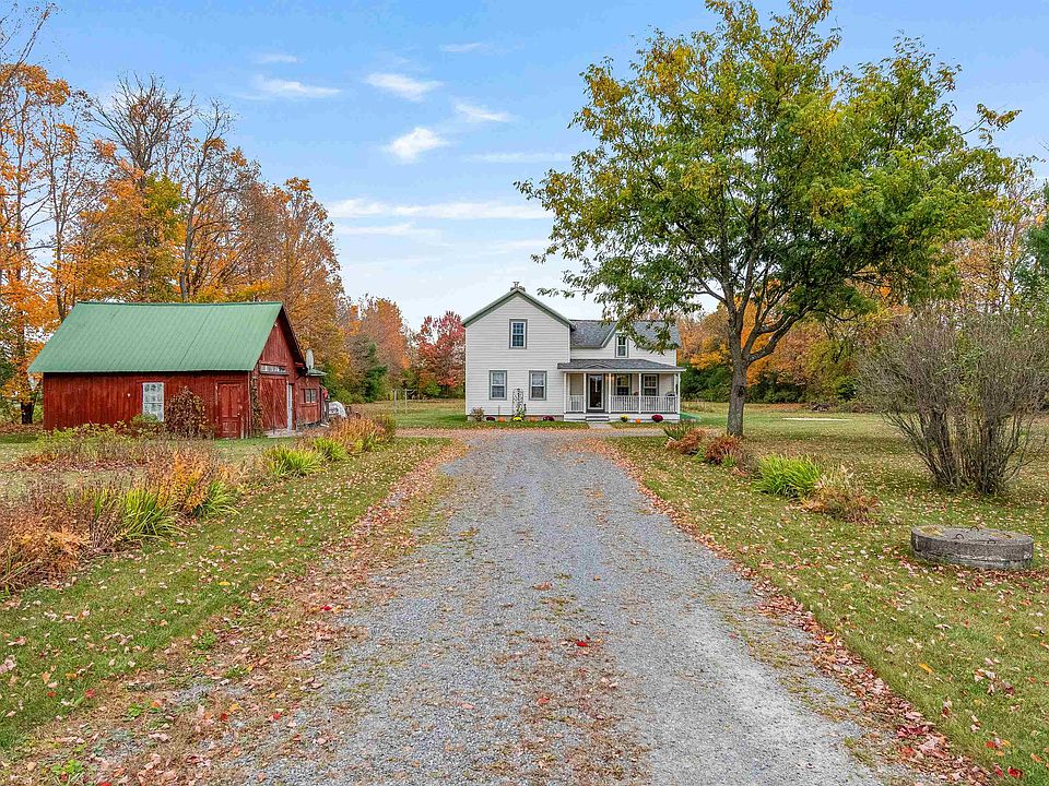 Your own tranquil haven awaits in this historic farmhouse set on 4.5 private acres replete with apple trees, berries, grapes, and blooming perennials. Rustic hardwood floors, exposed brick, and hand-hewn beams add to the home's character, while the flexible floor plan allows you the opportunity to arrange the rooms to best suit your lifestyle. A wood stove provides a cozy ambiance in the living room, which opens to the spacious dining room with French doors to the backyard. Upstairs, the loft includes a built-in armoire and space to make a cozy sitting area or home office. All 3 bedrooms are accessed from the loft as well as a half bath. Relax on the covered front porch sipping your morning coffee overlooking the apple trees. Tend to the garden and use your harvest to make fresh home cooked meals. The detached red barn has space to store your vehicle, room for a workshop, and covered storage outside for your firewood. All of the peace and beauty of country living balanced with convenient access to I-89, just 2 miles to the Jericho Center Country Store, 15 minutes to Essex Jct shops and restaurants, and 17 miles to downtown Burlington.
