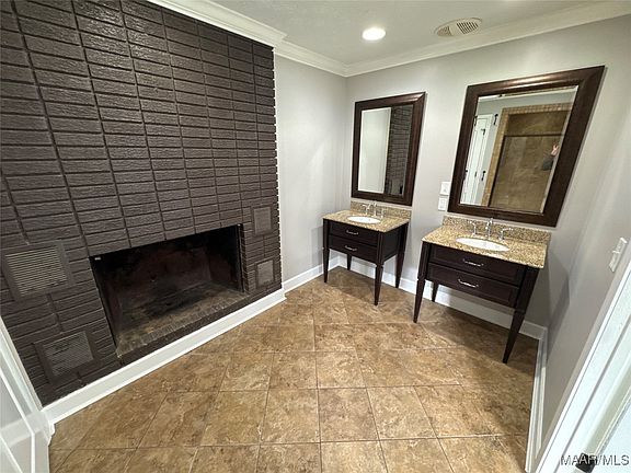 On the main level, the first master suite is expansive, offering a cozy fireplace and a luxurious en-suite bath with double vanities and a custom-tiled shower. Upstairs, the second master suite features a garden tub, oversized shower, dual sinks, and a walk-in closet. This level also includes three additional bedrooms and a guest bathroom with double vanities.
