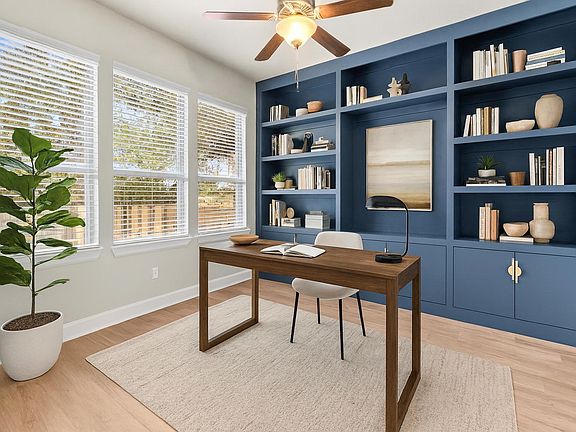 Welcome to 113 Quartz Dr in Dripping Springs, where practical living meets a few unexpected perks. This 4-bed, 3-bath home with a dedicated office comes with a 3-car garage plus decking in the attic so you don't have to choose between parking cars and storing all those holiday decorations (which you'll need, because the permanent LED lights are already installed and ready to impress). Inside, you'll find wood-look tile floors, zero carpet, that laughs at spills, a wide-open kitchen and living area, and surround sound speakers in the living room, kitchen, and primary suite because music makes everything better. A whole-house water softener keeps things running smoothly behind the scenes, too. Out back, an extended stone patio and tree-lined green space set the stage for grilling, lounging, or plotting your Halloween costume (you'll want to this cul-de-sac is in one of the best neighborhoods in Drip for Halloween festivities). A large shed in the yard adds even more storage, because let's face it, you can never have too much. And across the street? Quiet, open green space with trees instead of cars. The neighborhood itself adds to the fun: two parks, an amenity center with outdoor kitchen and pool, plus private access to Onion Creek for fishing, kayaking, and picnicking. Translation: you may never want to leave. This one checks the boxes: space, storage, community, and just the right amount of fun.