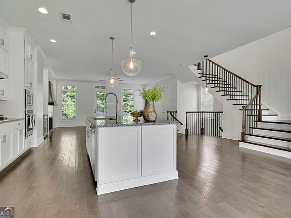 MOVE-IN READY | ELEVATOR-READY | MILTON HIGH DISTRICT! Welcome Home to this Stunning Craftsman-Style End-Unit Townhouse with Farmhouse-Inspired Finishes in the Sought-After Milton High School District! Meticulously maintained and thoughtfully designed, this open-concept end-unit townhome offers three spacious finished levels, abundant closet space, an elevator-ready layout, and flexible living areas perfect for today's lifestyle. Located near the vibrant communities of Downtown Milton and Crabapple, it blends timeless Craftsman charm with modern luxury and low-maintenance living. Step inside to a welcoming mudroom/drop zone with custom cabinetry and generous storage. Built with the future in mind, this home includes elevator-ready access on all three levels for maximum ease and functionality. The finished terrace level is a true highlight-featuring a wet bar, brick accent wall, ceiling beams, hardwood floors, and 3" plantation shutters. Whether used as a media room, 4th bedroom, or entertainment space, the possibilities are endless. Step outside to your covered patio, complete with undermount decking, ceiling fan, and heater wiring-perfect for year-round enjoyment and hosting with space for multiple grills. On the main level, the gourmet chef's kitchen shines with KitchenAid stainless steel appliances, ample cabinetry, a spacious island with seating for four, and dual pantries behind a charming barn door. The open-concept design connects the kitchen seamlessly to the dining area-seating 12-and the family room, creating an inviting flow throughout. Enjoy a covered front balcony for your morning coffee and a rear deck with peaceful wooded views. Retreat upstairs to the luxurious owner's suite, now enhanced with an expanded custom walk-in closet and spa-like bathroom offering double adult-height vanities, a walk-in shower, and a built-in coffee station. Two additional spacious bedrooms, generous closet space, a full bath with granite double vanity, and a laundry room with upper cabinets and sink complete the upper level. Recent Updates Include: Brand-new fenced backyard - ideal for pets, kids, or entertaining, all upstairs carpet removed and replaced with stylish modern flooring, and an expanded owner's closet - smart storage meets everyday luxury. Enjoy direct access to trails, a dog park, and a community fire pit just steps from your door. This move-in ready end-unit townhome offers unmatched privacy, abundant storage, and low-maintenance living-all just minutes from Downtown Milton, Alpharetta, and Roswell. Ideally located near top-rated schools, shopping, dining, and local events. Don't miss this incredible opportunity-schedule your private tour today!