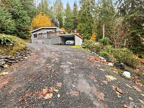 Discover privacy and space in this 4-bedroom, 2-bath very affordable home on over 2 acres in the Four Seasons Park. Surrounded by trees yet minutes from town, this 1,904 sq ft home offers an open floor plan, spacious kitchen with island, and both living and family rooms—the latter featuring a cozy wood stove. Enjoy outdoor living on the covered porch or expansive deck off the dining area. The primary suite includes a sunken tub and separate shower. With a new roof, ample driveway parking, and carport under the deck, this property offers comfort, convenience, and serene Northwest living.