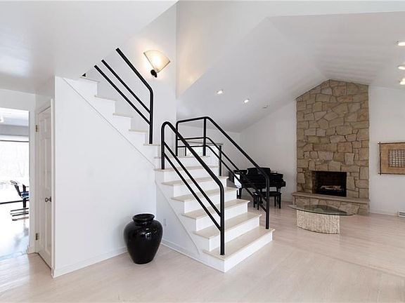 Light, bright, contemporary home, with open concept. Situated on a flat lot with three separate walk-outs to the deck/backyard, this house is an entertainers dream. Two story foyer, vaulted ceilings, 3 wood burning fireplaces, hardwood + granite flooring throughout...many more upgrades! The eat-in-kitchen is adorned with white cabinetry + brand new stainless steel appliances. Large master suite with custom granite bathroom + walk-in-closet is one of 4 generously sized bedrooms. Over-sized partially finished lower level includes game room, office, wet bar, full bathroom, + tons of built in storage.