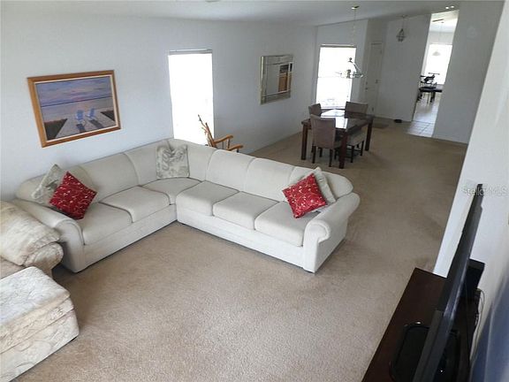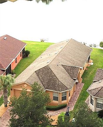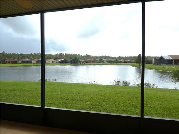 South facing WATERFRONT CABERNET model in Venezia subdivision of Solivita. Great CURB APPEAL with the stone in the flower beds and nice landscaping. Just a 30 second walk to the Venezia Pool. The owners have immaculately maintained this home! STUNNING VIEWS of the pond from the FULLY COVERED and SCREENED LANAI that runs the width of the entire home. Large master bedroom. Master bathroom features RAISED VANITY and shower with sliding glass doors. Home features tile in the foyer, bathrooms and laundry room, carpet in the two bedrooms, living room and dining room and vinyl in the kitchen. Large Kitchen has ample counter space. Plenty of room for a table and chairs make this kitchen a big plus. The great room and dining room have a great flow which is open and spacious with views of the water. Ceiling fans in bedrooms and great room. Epoxy floor in the garage. PULL DOWN Attic Stairs. Pre Plumbed loop in the garage for the addition of water softener or water filter. Come and see this beautiful home today!
