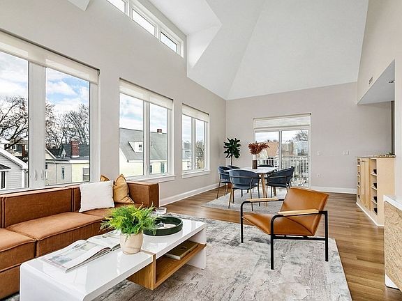 This fresh single level penthouse condo has an open plan living/dining area boasting a soaring 23 ft ceiling and slider to deck, updated kitchen with granite countertops and new Thermador SS appliances. The king sized primary bedroom has an en-suite bathroom and large walk-in closet. The second bedroom has a built-in cabinet, large closet and easy access to second bathroom with a walk-in tub and linen closet. New in-unit washer/dryer, new hardwood floors, oversized windows throughout and central heat and A/C complete the unit. Garage has a heated driveway where you’ll find your deeded parking space in front of your private storage room. The common areas include a private guest room, fully applianced kitchen, function room, fitness room and a beautiful roof deck with unobstructed views of Cambridge, Boston and beyond. Elevator goes from garage to roof deck. A stone’s throw to Porter Square, Red Line T, Commuter Rail, Lesley and Harvard Universities and easy access to all major routes.