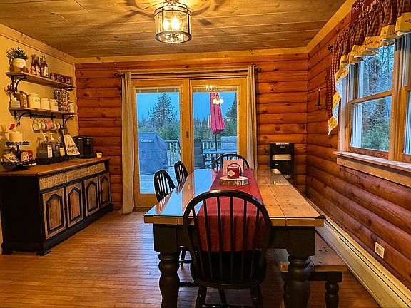 Beautifully maintained 3 bed, 2 bathroom log home situated on 17 acres on a quiet, well maintained road. Includes a walkout basement, front covered porch, back deck and fire pit, and a large detached barn. Just a mile to I-91 in Newbury, VT.