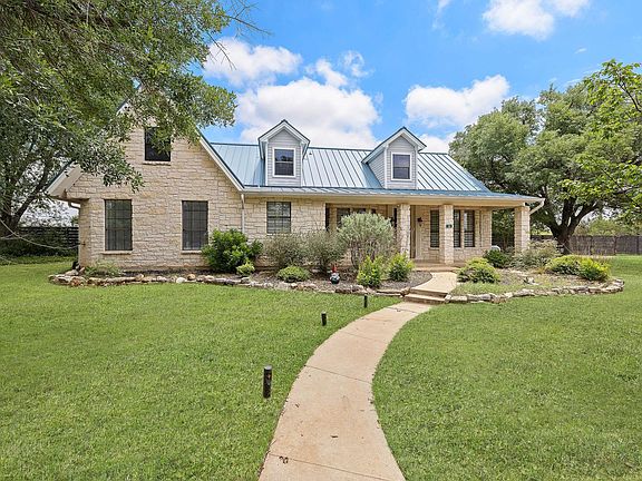 Welcome to 113 River View Rd—an extensively upgraded estate nestled on 2.7 private acres in Liberty Hill’s sought-after Riverbend Oaks community. This spacious 6 bedroom, 3 bathroom home offers 4,457 square feet of well-designed living space, blending timeless charm with thoughtful modern updates. Inside, you’ll find multiple living areas, upgraded flooring, and a striking double-sided stone fireplace that adds architectural interest to the home (currently decorative). The oversized kitchen is a true centerpiece with granite countertops, double convection ovens, a pot filler, warming drawer, trash compactor, and a walk-in pantry—perfect for both everyday living and entertaining. This home also features a sunroom, media room and a large upstairs living suite that is perfect for an in-law suite or teenage retreat. Extensive upgrades include a new 3-ton central heat pump, a five-zone mini-split system, propane tankless water heater, and a whole-home water softener with UV filtration. Electrical enhancements feature two updated breaker panels with Sense energy monitoring, ethernet throughout, and smart-home features including Nest detectors and locks. Additional highlights include a dedicated media room with AV wiring, heated and LED-lit mirrors in both main-level bathrooms, and a resurfaced in-ground pool. The property also boasts a 12,000 sq ft paved driveway and parking area, standing seam metal roof with added insulation, a green house, multiple storage sheds, a partially enclosed metal building perfect for extra storage or housing animals, a privacy fence with 12-foot gate, and a custom masonry mailbox. This is a true homestead! Located in the ETJ with no HOA and zoned to Liberty Hill ISD, this one-of-a-kind home delivers space, privacy, and modern comfort.