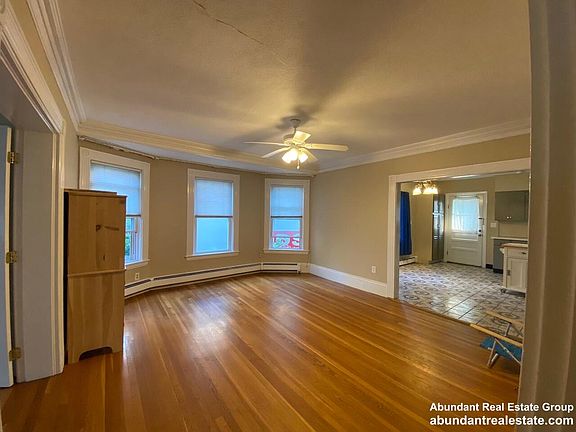 3-floor condo in townhouse duplex with Eat-in kitchen. Freshly painted private entrance. Large kitchen, dining room, and living room. Hardwood floors throughout the unit, High ceilings, and fans. Semi-finished attic carpeted. 2 driveway parking spots included. Free laundry in the private basement. Gas heat with separate thermostats on the first and second floors. Large closets, Basement, and attic storage. Bonus alcove room for office or other on the second floor. Total 2,100 sq ft + plus semi-finished attic space. Walk to 71 & 70 MBTA bus, Express Buses to Boston. Elementary School area. Non-smoking. Pets considered (cats preferred)