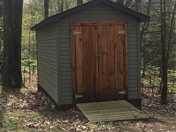 Absolutely beautiful home!! Can be used as an all year home or as a summer home. Within walking distance to Allegheny RIVER. BAMBOO hardwood in living area, Cathedral ceilings with decorative ceiling fans, wood burning fireplace, second level has 3rd bedroom and loft that looks over living area. Stick built home that has quality and style. NEW and NEVER LIVED IN! Ceiling fans in loft and all bedrooms, and for those hot muggy summer days CENTRAL AIR! Walls are painted in Stucco style throughout the entire home. Situated in wooded area with other homes/camps. Shed has electric! This is a MUST SEE inside to appreciate this spacious home. The builder utilized every bit of space making the inside of the home much larger with living space of approximately 1400 feet. You will be surprised when you enter this home. Outside is a covered porch that measures about 14 x 10 and it also has a ceiling fan.