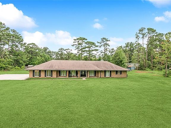 .90 ACRE 5 BEDROOM, 3 BATH RANCH STYLE HOME; COUNTRY LIVING IN DEMAND AREA OF FRENCH BRANCH ESTATES; INVITING FRONT PORCH; LUXURY VINYL PLANK AND CERAMIC TILE THRUOUT; FORMAL LIVING AND DINING ROOMS WITH CROWN MOULDING; AMAZING 24'X17' DEN WITH VAULTED CEILING; WOOD BURNING FIREPLACE WITH BUILT-IN SHELVING, PLUMBING FOR WET BAR & DOUBLE DOORS LEADING TO THE TWO PATIOS ON EACH SIDE OF THE DEN; ENTERTAINER'S KITCHEN WITH GRANITE COUNTER TOPS, LARGE ISLAND WITH ROOM FOR 4 BAR STOOLS, EAT-IN AREA, STAINED CABINETRY GALORE FOR STORAGE, STAINLESS APPLIANCES WITH BEVERAGE COOLER, 2 OVENS AND CERAMIC BACKSPLASH; 5TH BEDROOM/OFFICE/MEDIA ROOM AND BATHROOM OFF OF KITCHEN; LAUNDRY ROOM WITH BUILT-INS; 3 OTHER BEDROOMS PLUS LAVISH 18'X17' PRIMARY BEDROOM WITH CROWN MOULDING AND PRIMARY BATH WITH 4'X6' CUSTOM GLASS & CERAMIC SHOWER WITH HUGE WALK-IN CLOSET; 5TH BEDROOM OFF OF KITCHEN COULD BE CONVERTED BACK TO GARAGE; HUGE 22'X14' STORAGE ROOM INSIDE OF CONVERTED GARAGE AREA; NEW 45'X14' COVERED REAR PORCH; 10'X10' FIRE PIT AREA; NEW EXTRA WIDE DOUBLE DRIVEWAY AND PARKING AREA; FLOOD ZONE C