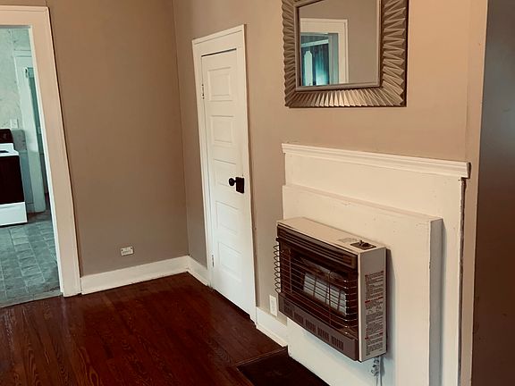 Large covered front porchPropane heatersSpacious kitchenBuilt-in shelvesPlenty of cabinetsAntique decorative fireplaceHardwood floors