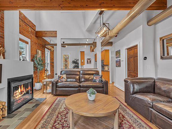 Exciting opportunity for downtown living in an iconic 1930s building just one block from Main Street! Enjoy this unique 2-bedroom, 1.5 bath condominium in the heart of downtown, just steps from exceptional Ann Arbor restaurants and shops and a few minutes' walk to Kerrytown, Farmers' Market, Hands On Museum and UM campus. You will love this end-unit home with light-filled ambience and charming character, soaring ceilings, exposed brick, wood beams, hardwood floors, and a real wood burning fireplace. There is a private entry porch and dedicated parking spot right outside your door. The furnace, air conditioner, water heater, and all major appliances have been replaced since 2022. Comes fully furnished. Don't miss the chance to be in the heart of it all just steps from your home. and UM campus