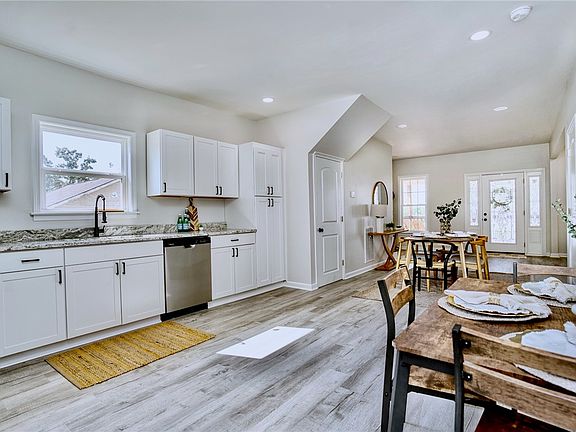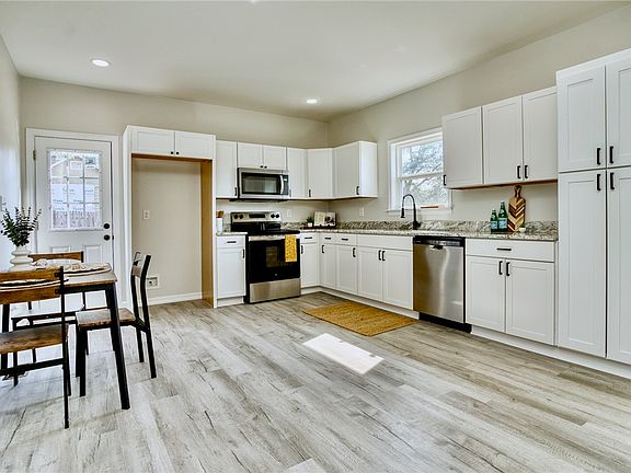 Oversized front porchNew cabinetsNew flooringNew stainless steel appliancesHardwood stepsCompletely renovated homePlenty of storage room