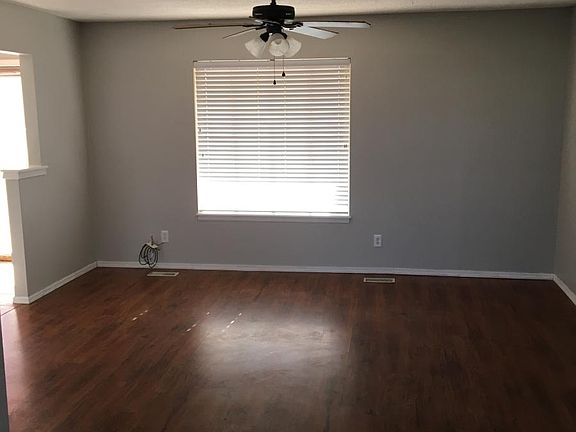 Open floor plan with 2 living rooms Bedrooms have been painted neutral color (updated pictures pending) Additional $100 deposit per pet. Tenant responsible for utilities and lawn care. Background and credit check required. Washer and dryer hookups. Central heat and air. Ceramic and laminate wood flooring throughout. Available July 1st, 2019.