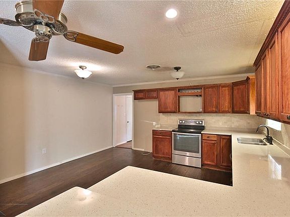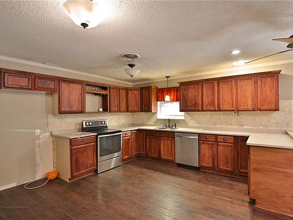 Small town living at its best! Gorgeously updated spacious home with open floor plan concept. This 3 bedroom, 2 bathroom home features beautiful quartz counter tops, stainless steel appliances, hardwood floors through out and tile in bathrooms. Large open living area with wood burning fireplace plus second living, formal dining, office or 4th bedroom, your choice. All of this on a large tree shaded, landscaped corner lot with workshop with electric for your man cave. Roof is only 2 years old. Recently appraised over listing price! 0 down for Qualifying buyers and seller will provide home warranty.