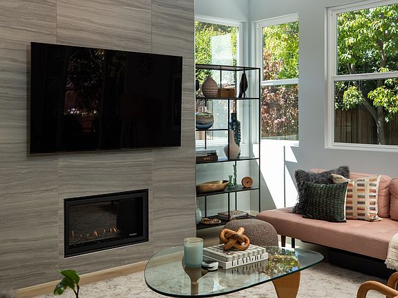Cozy gas fireplaceModern and sparkling cleanPeaceful tree-lined streetHigh ceilingsPrivate backyard with patioBright open living spacesSun-filled great room
