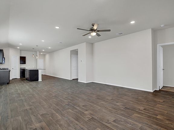 This amazing home offers 1,717 sq. ft. with 4 bedrooms and 2 baths. The foyer leads into the kitchen which features granite countertops, large kitchen island, walk-in pantry, with black black appliances. The kitchen opens to the dining area and family room. The large main bedroom, primary suite, is off the family room offering a large walk-in shower and huge walk-in closet. This home also includes a covered patio overlooking an open undeveloped area that feathers a lake view, both front and back yards offer, professionally landscaped and sprinkler irrigated yards. This home is a "Technology Smart Home," including these exciting extra's... the Alexa Voice Control Front Doorbell, Front Door Deadbolt Lock, Home Hub, Light Switch, and Thermostat. This