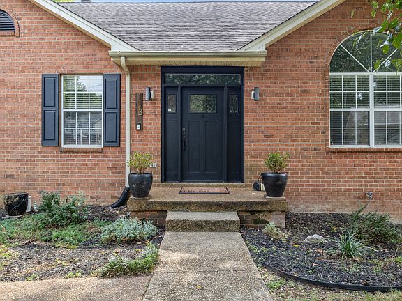 Welcome to this charming brick home, tucked away on a quiet cul-de-sac and framed by mature trees. Inside, the living room impresses with soaring ceilings, a cozy gas fireplace, and a loft that overlooks the space. The kitchen comes equipped with stainless steel appliances and a dedicated nook perfect for a coffee bar, while the private balcony provides a peaceful retreat for entertaining or unwinding. The primary suite features vaulted ceilings, a sun-filled picture window, a walk-in closet, and a renovated bathroom with a tiled shower. Downstairs, the finished basement adds versatile space for an office, recording studio, or home gym, complemented by an oversized two-car garage with ample storage space. Ideally located just 20 minutes from downtown Nashville, 10 minutes from the airport, and only minutes to the marina and golf course, this move-in ready home blends comfort, convenience, and charm.