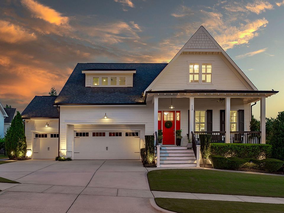 Sophisticated and immaculately maintained, this 3,639 sq. ft. home shines with over $154,000 in thoughtful upgrades inside and out, after purchasing in 2017. A model-like showcase of modern living, this smart home features Paradigm home series in ceiling/inwall speakers, home audio iPad inwall docking station kits, and a prewired CPI security system. Plantation shutters, crown molding, elegant lighting fixtures, a soothing neutral palette, and luxury hardwood flooring enhance most of the 4-bedroom, 2 full and 2 half bath home. The large covered front porch welcomes you with space for cozy seating and opens into an elegant entry, where gleaming hardwoods flow throughout the main living areas. Barn-style glass doors provide privacy for the formal front room, ideal as a home office or dining space, complete with board and batten wainscoting, crown molding, and a soft two-tone palette. The open floor plan seamlessly connects the family room, casual dining, and kitchen. A coffered ceiling and gas log fireplace anchor the family room, while the dining nook sits beneath a bright window framed by more custom trim. At the heart of the home, the kitchen impresses with a large center island equipped with seating for 4, stainless farmhouse sink plus prep sink, two-toned with soft-close cabinetry, quartz countertops, gas range with separate warming oven, stainless hood with pot filler, double wall ovens, pantry, bar area, and recessed stainless lighting. The main-floor owner's retreat is a true sanctuary, offering a private sitting area, detailed wainscoting, and a massive custom walk-in wardrobe with pass-through to the laundry. The spa-like bath includes a dual-sink vanity, vessel tub, oversized step-in tile shower with rain and shower heads, and a private water closet. The laundry room itself is fully outfitted with cabinetry, drop zone, open shelving, sink, and hanging storage for ultimate convenience. Upstairs, find two secondary bedrooms, a versatile third bedroom/bonus with attached half bath, and access to floored attic storage. A dedicated theater room with tiered flooring and a full bath with dual sinks complete the second level. Outdoor living is exceptional with spaces designed for both relaxation and entertaining: oversized covered front porch, screened back porch, expansive wrap-around deck, and patio all with sound wiring and strategically located color-changing integrated lighting with remote control, Trex deck with lighted retractable awning, and a natural gas fire pit with stone pavers and custom weather-proof TV box. Professional landscaping ensures shade, privacy, irrigation, and nighttime ambiance. Located in 12 Oaks, enjoy a vibrant community with manicured grounds, sidewalks, pools, tennis and pickleball courts, golf, clubhouse, playgrounds, and planned social activities. Please note there are 2 HOA fee structures for this community, the monthly Club at 12 Oaks dues of $118 and the Master Association semi-annual fees of $252. Just minutes from breweries, restaurants, shopping, parks, and major roadways, this home offers both luxury and convenience.