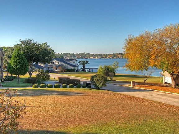 Lovely view of Lake Conroe from many rooms including the back porch & balcony. Has custom features throughout, such as crown molding, real wood floors, open gourmet kitchen overlooking lake, very energy efficient, and the list goes on. Custom Kingdom Builder designed this home with living & entertaining in luxurious style in mind. Garage has extra area for golf carts & lg. vehicles, easy lake access and great golf community, with lots of activities. Be impressed, but don't wait, it won't last.