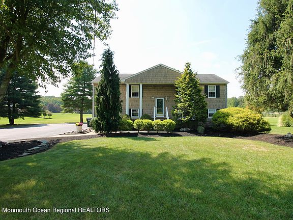 Beautiful house featuring 4 bedrooms and 2 1/2 baths situated on 3 acres of a gorgeous, park-like setting! The spacious, eat-in kitchen is newer with lots of cabinetry with Crown Molding, inlay flooring, Stainless Steel appliances with an Island and recessed lighting! Also, there is a gorgeous view of the pool and yard from the kitchen! The living room is large beautifully carpeted with three bedrooms (additional storage in bedroom) upstairs and a fourth bedroom downstairs. The master bedroom is very spacious with an attached bathroom. The downstairs is very large with a family room, recessed lighting, bedroom and bathroom, which leads to a beautiful paver patio and fenced-in, in-ground pool with a new liner. The bathrooms are newer, there is a whole house fan, the Lenox HVAC and 2 zone hot water baseboard furnace are approximately six years old, and the shed is newer (2016). The three acres that surround this property are breathtaking! Tranquil setting, quiet and peaceful! The in-ground pool is a salt water pool.