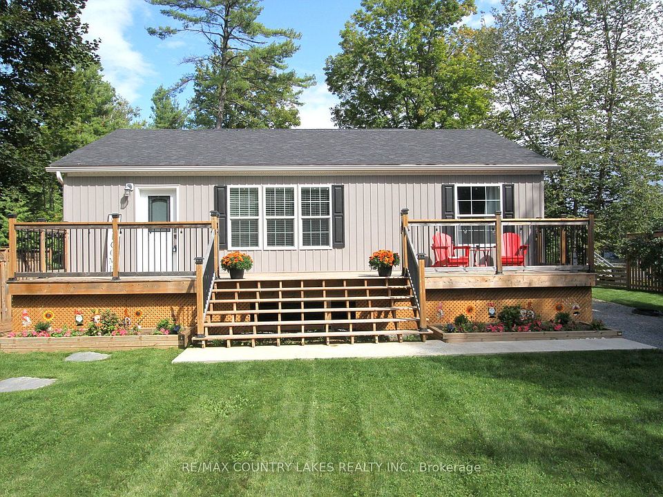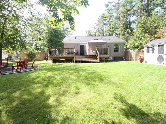 Beautifully Maintained 2+2 Bedroom Waterfront Bungalow with 1030 sqft on the main floor and Built in 2019. This year-round bungalow offers 75 feet of waterfront on scenic Butternut Creek with direct access to Canal Lake, part of the renowned Trent Severn Waterway. The open-concept eat-in kitchen features a center island, granite countertops, and a walkout to the rear deck - perfect for outdoor dining. A spacious living room offers another walkout to a large front deck, ideal for enjoying water views. The primary bedroom boasts a luxurious 5-piece ensuite, while the main floor also includes laundry with walkout for convenience. The partially finished lower level provides two additional bedrooms, a generous recreation room, and a utility room. Modern comforts include propane forced-air heating, central air conditioning, water filtration system with UV light, and durable laminate flooring throughout. Outdoors, guests will appreciate the large fire pit, shoreline bunkie, two storage sheds, and underground sprinkler system. With ample parking and excellent curb appeal, this property is perfectly suited for year-round living or weekend retreats.