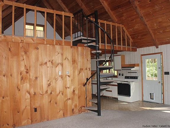 Enjoy total privacy in this classic chalet style home. Cathedral ceiling in the LR/DR area. Spiral staircase to generous loft that could be a second bedroom, office etc. Ground floor bedroom. Walk across street to a 9 hole golf course! Low maintenance property with Central Air.