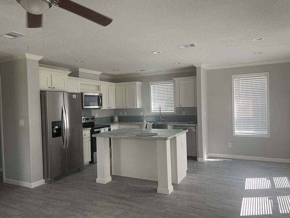 Large covered carportIsland for extra workspaceAbundant natural lightHigh ceilingsSpacious master suiteIndoor laundry roomOpen floor plan