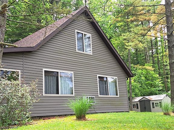 Adorable SENECA LAKE Turn-Key Cabin awaits your arrival for summer! This 2-3 bedroom cabin utilizing the loft and sunroom can sleep 8-10 family or friends that are looking for a getaway to enjoy swimming, boating, skiing, tubing, fishing, hiking or just relaxing around the fire pit or sitting on the large patio or your personal dock enjoying the lake view. The loft area with plenty of bedding will make you feel like you are sleeping in a treehouse, and the sunroom with a daybed has a sliding door for privacy. The great room allows room for eating at the table or the breakfast bar, playing games or watching movies on a rainy day. A fully stocked kitchen with white cabinets will make preparing meals a breeze. A bath and primary bedroom with large closet completes the interior of this lovely cabin. Dock your boat, jet ski or kayak on your own personal dock just a short walk or golf cart ride away! A maintenance-free shed provides storage for your yard tools and boating supplies. Located on Muskingum Watershed Leased Land-lease fee $1,752/yr. Schedule your tour today and get ready for summer lake fun!