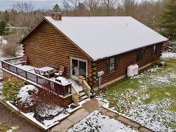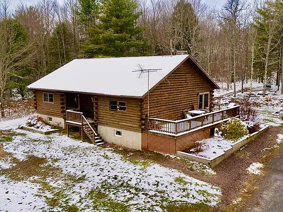 Discover your own slice of peaceful paradise in the heart of Sullivan County! This log home is situated on 11 private acres, offering serenity & a connection to nature, ideal for year-round living or a recreational escape.You'll find the ultimate in convenience & accessibility with 1 level living. The thoughtfully designed layout features 3 comfortable bedrooms and 2 baths.The heart of the home is a warm living/kitchen/dining area centered around the propane fireplace. The basement offers a family room & lots of storage. Add in 2 expansive garages, one with extra high doors and you have everything you need! Outdoors, there is ample space for hunting, hiking, gardening, picking blueberries or simply relaxing on the deck or in the hot tub. Seller is willing to give a $4,000 flooring credit.