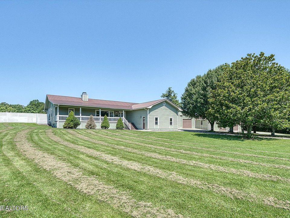 Set on 2.86 level acres with sweeping year-round mountain views, this 2,524 sq. ft. residence offers the perfect balance of sophistication and comfort. Thoughtfully updated with a 2023 HVAC, tankless water heater, new windows, and a 2020 metal roof, the home features 4 bedrooms and 3 baths, including two master suites with walk-in closets. A chef's kitchen with quartz countertops, full-height Palmer cabinetry, and premium Whirlpool appliances anchors the interior, complemented by granite bathrooms, tile floors, and a gas fireplace. The outdoor living is exceptional - heated saltwater pool with waterslide, open gazebo, gas grill, and an inground trampoline create a private resort experience. A 40'x60' RV garage workshop with 3 bay doors and includes an auto lift and various air stations with a 80 gallon compressor. As well as moveable walls to create a paint room or office. There is also a half bathroom (not in use). The RV bay door measures at 12'Hx9'10''W and the second bay door is 11'6''H. There is also a second 30'x40' garage with a bay door measuring 11'6''H. Both garage workshops have new 6'' gutters installed August 2025. With Spectrum high speed internet, this property seamlessly blends elegance, leisure, and practicality. Buyer to verify all information before making an informed offer.