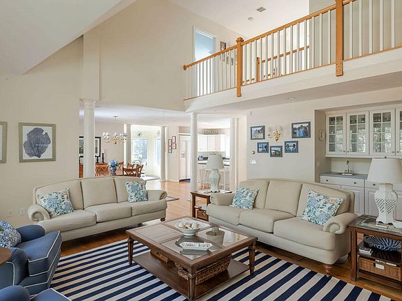Calling all buyers .... well, actually only one buyer can have this lovely spacious Contemporary Cape. Come tour this bright, expansive 4 bedroom home located down a private drive on nearly an acre of natural and manicured grounds. As you approach the home, the sunlight fills the entry hall, and continues into the lovely living area with extensive windows capturing the natural surroundings beyond. The open first floor allows easy flow from living room with wet bar, to dining area, kitchen and breakfast room. Just down the hallway is a laundry area, and spacious bright primary suite with bath and large walk-in closet. This home offers the perfect set up for first floor living, continuing outside to a sizable mahogany deck for additional enjoyment. If you are seeking extra space for friends/family, take a stroll upstairs to find three sizable bedrooms and a full bath. Looking to work from home? The lower level, which can be accessed from inside the main home as well as a separate outside entrance, leads to a finished family room/office area with private bath and kitchenette. Extensive walking trails nearby and home is within 1 mile of the beautiful beach at ''The Spit''