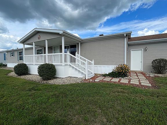 This manufactured home is located in the Miamisport Community & features an open concept layout that connects the family room with a corner gas fireplace seamlessly to the eat-in kitchen that has a patio door offering abundant lighting and direct access to the back porch! The kitchen features a center island, gas range, closet pantry and extra light from the patio doors. Multiple dining spaces makes this an easily adaptable space for your needs. The master has 2 walk-in closets & a spacious ensuite bathroom complete with a double vanity, jet tub & standup shower. Laundry room has an extra closet for even more storage!