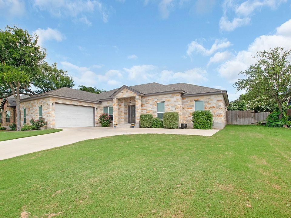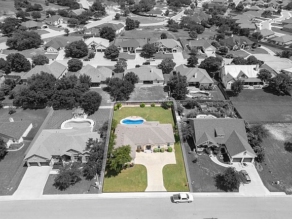 Once you arrive at 113 Travis Trail in Burnet you will never want to leave!! This home built in 2018 offers 4 bedrooms and two full baths. An oversized garage , an amazing laundry room with built-in cubbies, beautiful manufactured hardwood floors, a walk-in pantry and a gas fireplace with remote start are just some of the many things that make this house amazing! While this is a great home for a large family to spread out , let's talk about the outdoor living it offers!!! The front yard is classy and clean with a sprinkler system for convenience, but the back yard has much much more!! Fully fenced for peaceful privacy while you sit on your large patio and watch the kids or grandkids swim in your inground pool or make smores in your outdoor fire pit!! This spot is great for entertaining with friends or keeping your family close and safe literally right in your own backyard. All mounted televisions will stay in the home. This home , in the highly sought after subdivision HILLS OF SHADY GROVE is looking for its new family and priced to sell quickly!