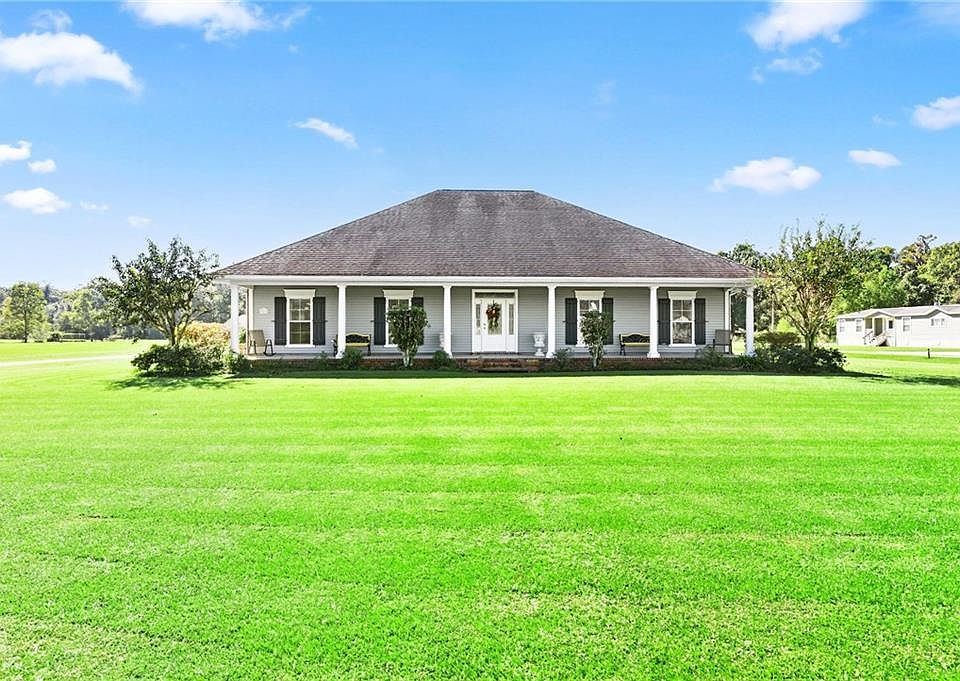 Property with income! This charming home sits on acres of land that offers plenty of space and functionality. Step into the warm & inviting foyer, where you will enter into double doors to the formal dining room currently used as an office. The 25 x15 spacious living area offers a little bit of the backyard view and boast 16 feet vaulted ceilings, a floor to ceiling brick fireplace w/mantel and laminate flooring. The kitchen is complete with granite countertops, walk in pantry, stainless steel appliances, island seating that opens to the breakfast area making it ideal for entertaining. Enjoy the 3 bedrooms that are located away from living area of home, each designed with comfort and privacy in mind. The primary suite boasts of natural light coming from a wall of windows looking out to the beautiful view of the pool and property. Relax inside the primary bath with a jacuzzi tub, walk-in- shower, double-vanity, and a closet big enough to walk-in. Extra space is available upstairs in a room that could be used for many different ways. It's big enough to be a bedroom, an office area, reading nook and also includes a large open closet, the choice is yours. The extended driveway leads you to the 2-car carport (24x22)for the main house, that extends onto an open deck along with back yard entrance to home. The in-ground saltwater pool surround by a fence is 3ft on both ends & meets in the middle at 5-ft, making it a perfect spot to relax and entertain. At the end of the property is a separate 2 story home offering 1139 sq. feet of living area. It includes, 1 bedroom, full Kitchen, 1 full bath, inside laundry room and 2 great room areas. Outside has over 1283 sq feet of covered area, great for events such as for boils or picnics with invited guest, 2 separate areas for boats, ATV's or Bikes. The home is currently tenant- occupied until December. With its spacious grounds, thoughtful layout, and versatile living spaces, this property beautifully combines comfort, flexibility, and classic charm. Flood insurance on this property is currently at $1123 per year. Septic tanks have been recently maintained. Total living area on property is 3581. Main home is 2765sqft and guest house is 1138sqft. Lot size : 179x575x186x637
