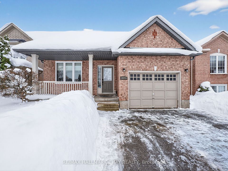 Welcome to 113 Tunbridge Road in Barrie's desirable North East End. This beautifully maintained all-brick bungalow features a bright, open-concept layout with 9-foot main floor ceilings and a vaulted living room, creating an airy and inviting space ideal for both everyday living and entertaining. The main floor offers two generously sized bedrooms and two full bathrooms, along with the added convenience of main floor laundry and inside access to the garage. New windows installed in 2025 flood the home with natural light throughout. The primary bedroom is a true retreat, complete with a walk-in closet and a private ensuite featuring a relaxing soaker tub. The eat-in kitchen flows seamlessly into the family room and walks out to a private backyard and deck, perfect for summer BBQs or quiet mornings outdoors. The fully finished basement provides excellent additional living space with a large rec room, bedroom, full bathroom, and the flexibility to create a fourth bedroom if desired. The private backyard also includes a convenient garden shed for extra storage. Enjoy fantastic curb appeal with mature landscaping and a welcoming front porch, all in a prime location close to RVH, Highway 400, Barrie North Crossing, parks, and more. A truly move-in-ready home that clearly shows pride of ownership.