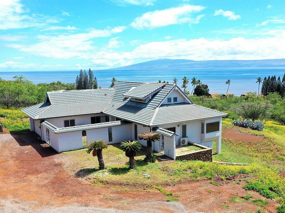 Sensational ocean and island views explode from this beautiful 3 bedroom, 3 bathroom home. Located on the south side of Molokai on 2+ acres in the coveted Kawela Plantation II. This As-Is spacious multi level, 2800 sf property has been architecturally designed with a Mediterranean flair boasting a stunning blue tile roof, stucco exterior, enclosed promenade, and customized, hand-crafted rock walls. The yard is completely fenced and gated with a large automatic rod iron gate. The living areas are laid out on three levels which are connected with a large spiral staircase made with beautiful Brazilian Cherry Hardwood treads. Top level is a loft/office with additional storage area and overlooks the main living areas. Having its own sliding door to a private balcony. The main level features dramatic high-beam ceilings, with an open floor plan of the kitchen, dinning and living room areas, with direct access to the 444 sf covered lanai. The Large windows and bays allows the natural sunlight in while supporting the expansive, surrounding views. The kitchen and bathrooms have been completely upgraded with new stainless steel appliances, customized cabinetry, and granite counters. The master suite has direct access to the covered lanai and includes a walk-in closet with en suite bathroom with double sinks and large spa tub. The lower level consists of a kitchen, entertainment room, bedroom and full bath, with access to the lower covered lanai. The laundry/mud room is located directly off the kitchen and connects to the attached two car garage. The home has been recently updated with 13 solar panel arrays, 7 split air-condition systems installed throughout the home with a Tesla battery back up system. This system is owned outright and not leased. Kawela Plantation homeowners have the accessibility to utilize the 5,500 acres of common grounds to hike or hunt as well as the use of the Beach Park. In winter months you will see the Humpback Whales breaching in the channel between Molokai and Lanai.