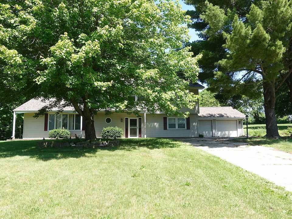 Tranquil setting offered with your 3 bedroom 1.5 bathroom home featuring entry hall, large living room open to dining room and adjacent to eat-in kitchen including appliances, and easy access to covered patio perfect for outdoor grilling. Family room features masonry fireplace, and glass sliders granting access to covered patio. Bathroom and laundry/mudroom located between the family room and 2-car attached garage. Home features a main level recreation room, or flex space ideal for fitness, home office, etc… Second level provides the right amount of space for three nice sized bedrooms served by hall bathroom. Low maintenance steel exterior, attached 2-car garage, garden shed, spacious yard to enjoy gardening, nature views, and outdoor recreation. Country subdivision with Lake Storey, and City amenities just minutes away. Call today!
