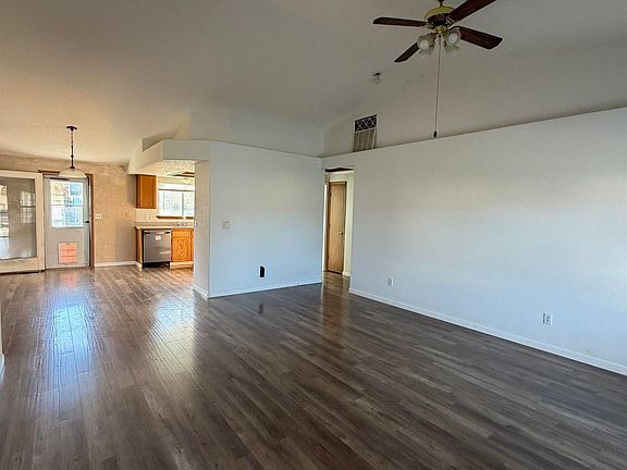 Discover unbeatable value and convenience with this beautifully designed single-level, 4-bed, 2-bath home—perfectly positioned in the heart of town! Just minutes from shopping, dining, and city parks, this home delivers the ideal blend of comfort, privacy, and low-maintenance living. Enjoy no backyard neighbors with a serene common area directly behind the property—an incredible bonus rarely found at this price point. The inviting covered front porch welcomes you in, leading to a bright layout featuring a split-bedroom design for added privacy. You’ll love the spacious kitchen, complete with ample cabinetry, a pantry, a window over the sink, and a seamless flow into the dining area—perfect for hosting or everyday living. A charming bayed window enhances the front bedroom, offering extra natural light and a cozy, custom feel. With durable vinyl siding for easy upkeep, this home lets you spend less time on maintenance and more time enjoying everything the area has to offer. A centrally located gem with space, privacy, and style—this one checks all the boxes! Don’t miss it!