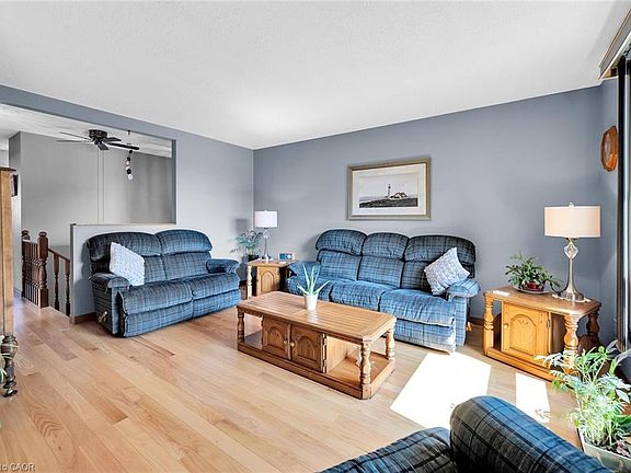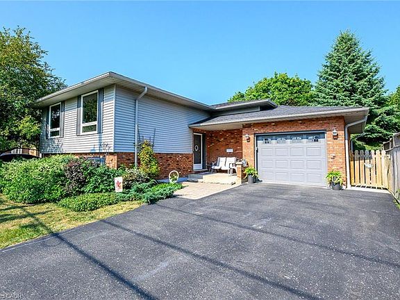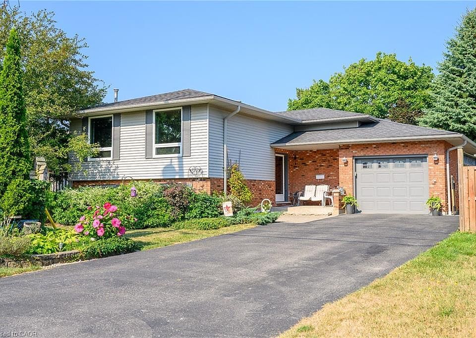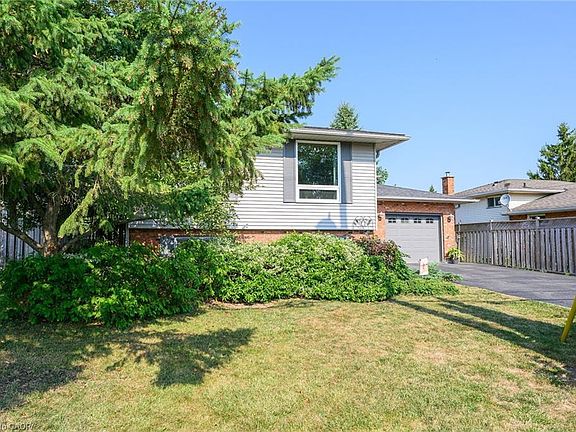Welcome to this charming raised bungalow, impeccably cared for inside and out, and nestled in a highly desirable in-town location! Offering 3+1 bedrooms, an office, 2 full bathrooms, and an abundance of living space with three cozy family rooms and loads of storage, this home is ideal for growing families or multigenerational living. Enjoy meals in the formal dining room gleaming with newer hardwood floors, graciously prepared in a spacious Eat-in kitchen enriched with granite countertops perfect for entertaining. The main bathroom features thoughtfully upgraded heated floors for year-round comfort, while the lower rec room boasts a warm gas fireplace for cozy evenings. Bright, oversized basement windows and a separate walk-up entrance infuse the lower level with an abundance of natural light, perfect for a future in-law suite. This meticulously maintained home includes newer hardwood floors on the main level and an updated furnace, AC, and water heater. Central vacuum, plus generous storage space throughout. Your private retreat awaits outside! Step out back onto a two-tiered deck and soak in your private backyard paradise, lushly landscaped, complete with breathtaking gardens, stately mature trees, and a charming garden shed. Park with ease: your private paved driveway can accommodate up to six vehicles, and the home includes an attached single-car garage. Located close to everything: schools, parks, shopping, restaurants, rec center, churches, trails, and a scenic ravine! This is a rare, move-in ready sanctuary where convenience meets tranquility. Don’t miss your chance to own this gem in an unbeatable location!